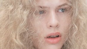 The red tone and soft outline create a mood of passion, energy, and mystery, a visual metaphor for emotion or desire. A close-up, intimate shot of two people kissing. The lighting is bright and soft, contrasting the earlier red scene, and the styling, a red ruffled top and natural textures, gives the image a tactile, emotional feel.