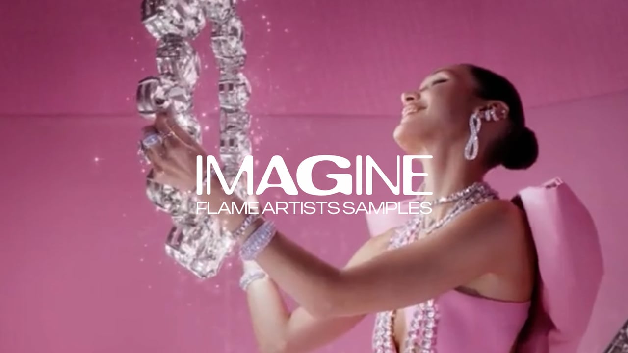 A person with short hair wears a white, textured blouse, open at the chest. They showcase a hand adorned with a large, ornate ring featuring a central gem encircled by smaller stones. A necklace with a large pendant complements the jewelry. The person is positioned against a backdrop of rocky terrain under a clear blue sky.