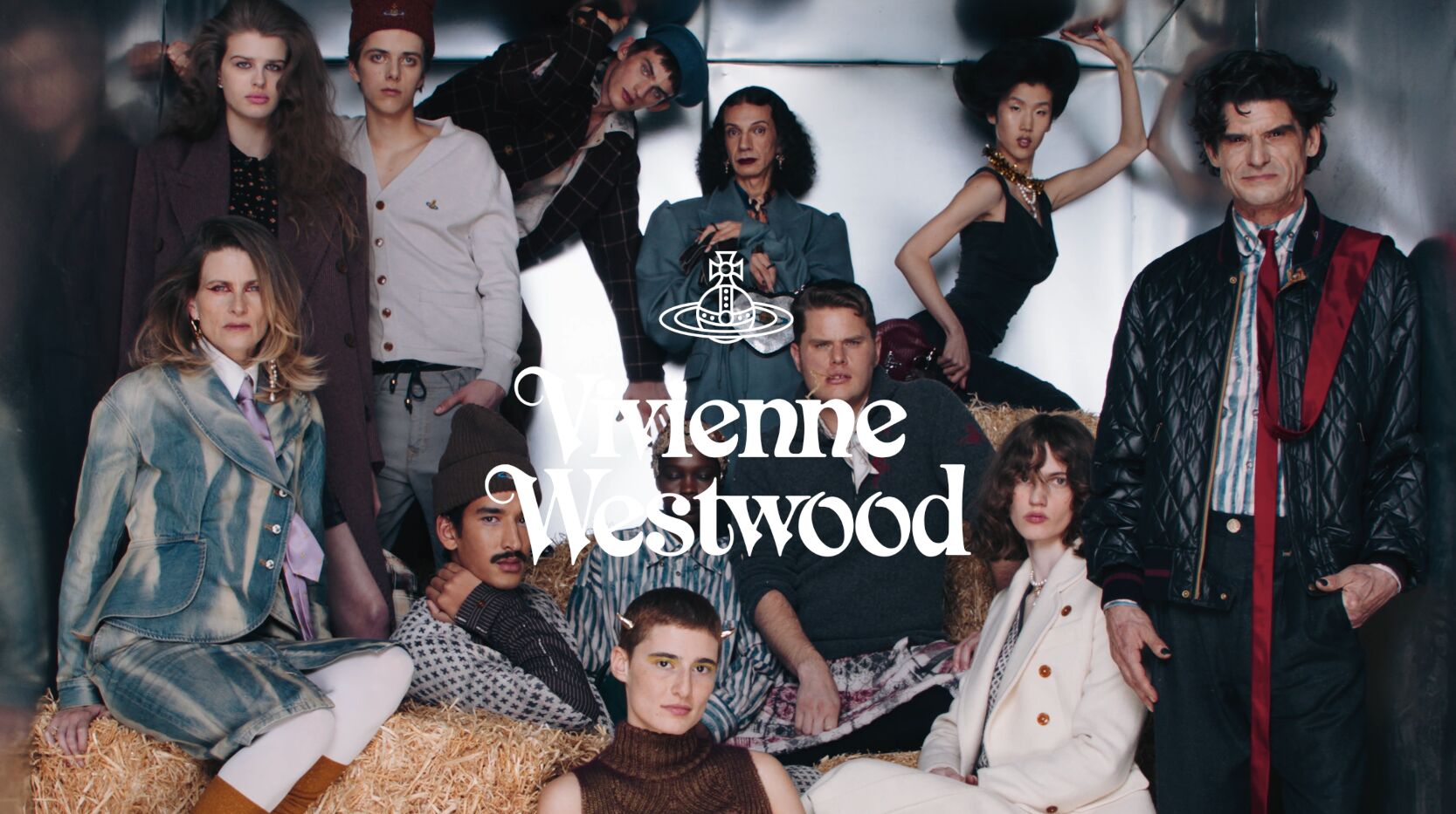 A diverse group of fashion models gathers on stacked hay bales inside a metallic, tunnel-like space. Their poses range from relaxed to theatrical, creating tension and rhythm. Outfits mix tailoring with textured knits, vintage silhouettes, and bold accessories. Expressions feel cool, confrontational, and stylized, while dramatic lighting sharpens contrasts and heightens the editorial mood.