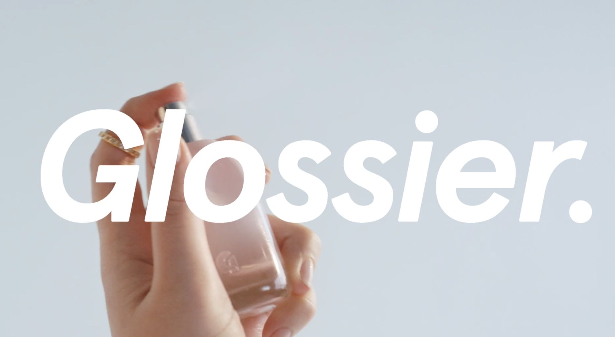 A hand delicately holds a small, translucent bottle with a metallic cap. The fingers are adorned with gold rings, and the background features a soft, neutral tone, enhancing the minimalistic and elegant presentation. The bottle's contents appear slightly pinkish, suggesting a cosmetic or fragrance product, with the overall scene exuding a sense of sophistication and style.