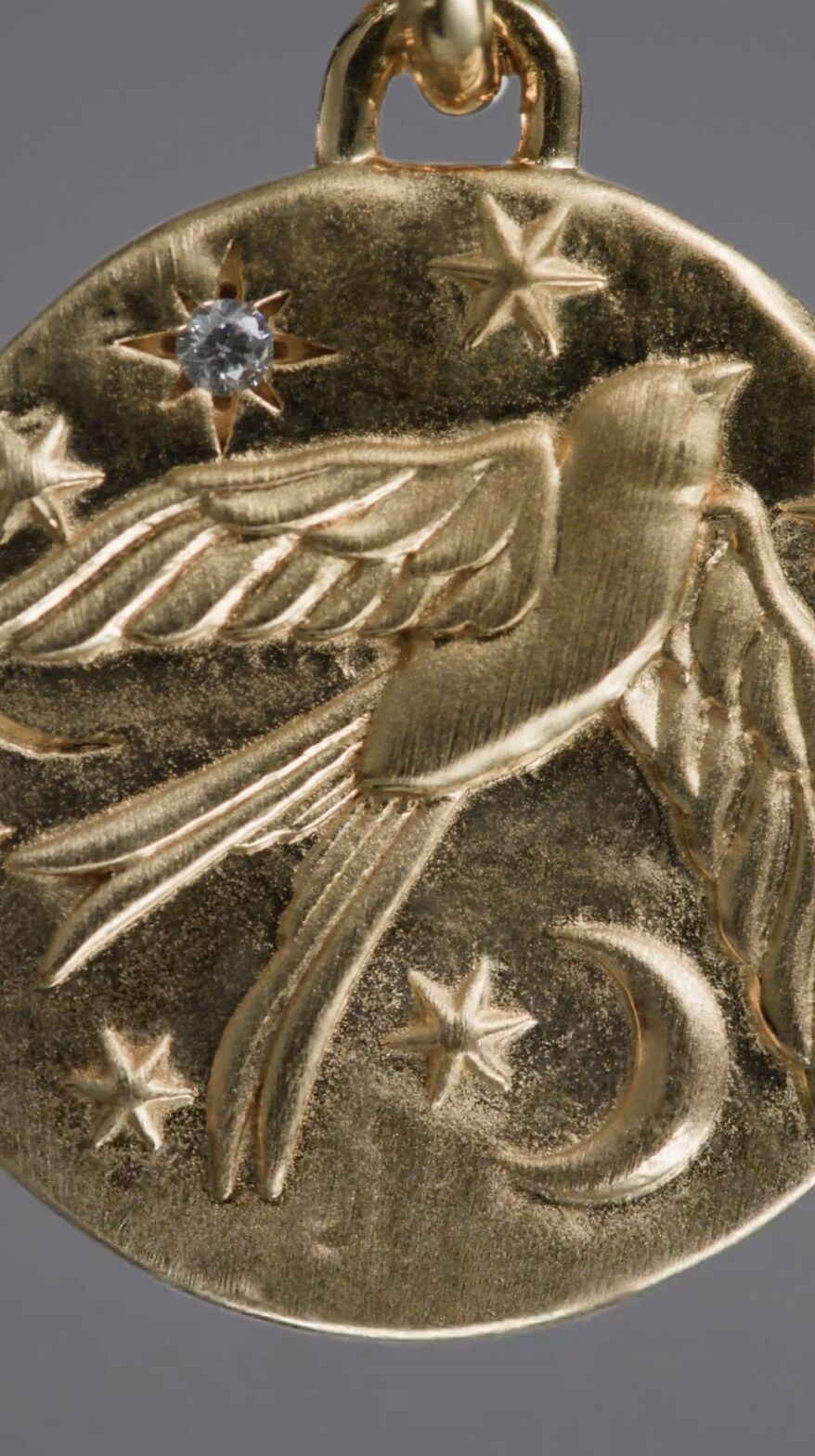 On a textured red surface, four small golden pendants in the shapes of miniature handbags rest elegantly. Each pendant is attached to a fine, gold chain, casting subtle shadows. The warm lighting highlights the metallic sheen, accentuating the luxurious craftsmanship and intricate design details of the handbag charms, creating an atmosphere of elegance and opulence.
